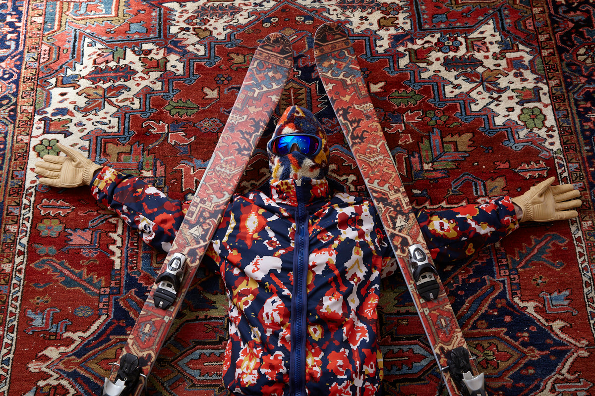 Kennedy: One of my first rugs was a threadbare prayer rug that was so well-used, it had hand and knee marks. So, physically, a ski is so wildly different than a rug, but to still have it be a piece of folk art—something that was crafted with someone’s hands—is a beautiful part of it. I have a belief that you should surround yourself with art all times. Even your car should be a version of art—I’ve been hand sewing the seats of my old Mercedes. And to take a piece of folk art and imprint it on a ski, that can be an interesting blend of new world and old world. I am still desperately trying to find someone to make a Gore-Tex jacket with my rugs on the inside. It would be insane.