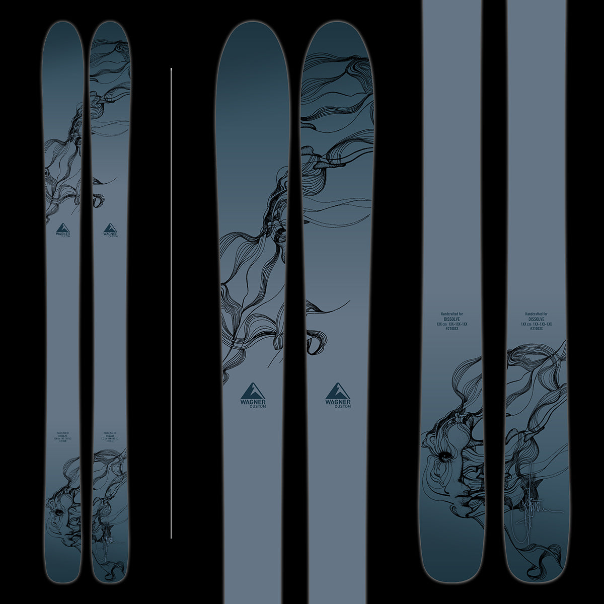 “As we meet new people, and new joys and sorrows in life, we change our perspectives.” This flexibility in life translates to freedom in art. Her illustration and pointillism are striking on skis, and are now available in Wagner’s most recent collection.